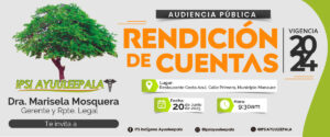 Mediante el presente se busca dar a conocer la gestión y avances de la IPSI AYUULEEPALA durante la vigencia del año 2022, en el acto publico de rendición de cuentas. Sigue nuestra<a class="moretag" href="https://ipsiayuuleepala.org/rendicion-de-cuentas-2022/">Leer más...</a>